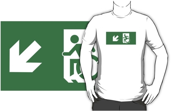 Accessible Exit Sign Project Wheelchair Wheelie Running Man Symbol Means of Egress Icon Disability Emergency Evacuation Fire Safety Adult t-shirt 110