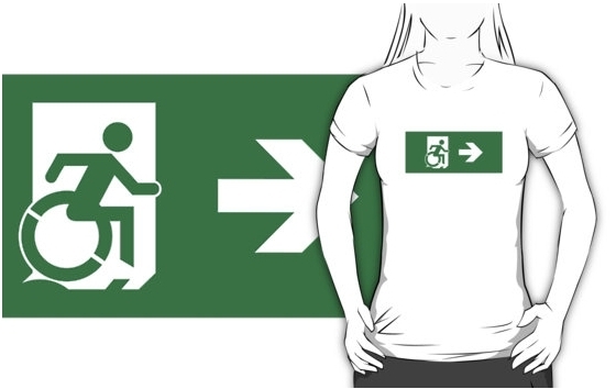 Accessible Exit Sign Project Wheelchair Wheelie Running Man Symbol Means of Egress Icon Disability Emergency Evacuation Fire Safety Adult t-shirt 116