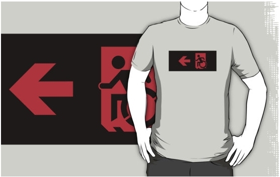 Accessible Exit Sign Project Wheelchair Wheelie Running Man Symbol Means of Egress Icon Disability Emergency Evacuation Fire Safety Adult t-shirt 12