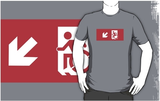 Accessible Exit Sign Project Wheelchair Wheelie Running Man Symbol Means of Egress Icon Disability Emergency Evacuation Fire Safety Adult t-shirt 120
