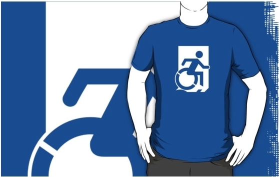 Accessible Exit Sign Project Wheelchair Wheelie Running Man Symbol Means of Egress Icon Disability Emergency Evacuation Fire Safety Adult t-shirt 126