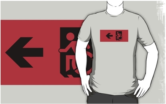 Accessible Exit Sign Project Wheelchair Wheelie Running Man Symbol Means of Egress Icon Disability Emergency Evacuation Fire Safety Adult t-shirt 13