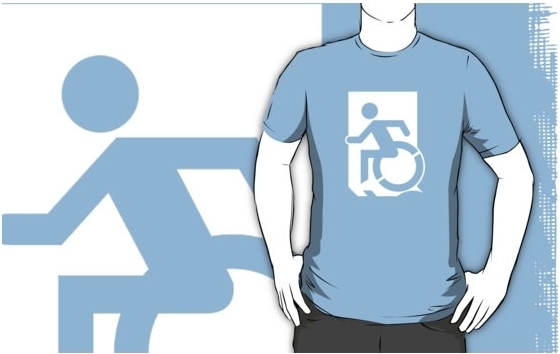 Accessible Exit Sign Project Wheelchair Wheelie Running Man Symbol Means of Egress Icon Disability Emergency Evacuation Fire Safety Adult t-shirt 130