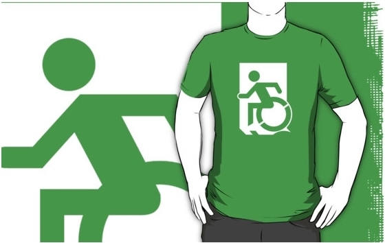 Accessible Exit Sign Project Wheelchair Wheelie Running Man Symbol Means of Egress Icon Disability Emergency Evacuation Fire Safety Adult t-shirt 135