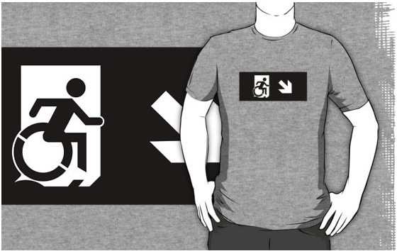 Accessible Exit Sign Project Wheelchair Wheelie Running Man Symbol Means of Egress Icon Disability Emergency Evacuation Fire Safety Adult t-shirt 136