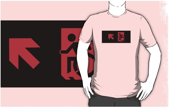 Accessible Exit Sign Project Wheelchair Wheelie Running Man Symbol Means of Egress Icon Disability Emergency Evacuation Fire Safety Adult t-shirt 14