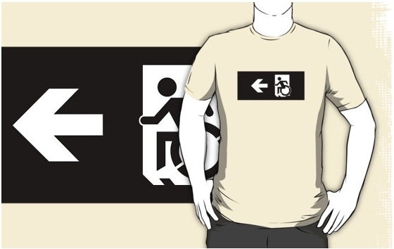 Accessible Exit Sign Project Wheelchair Wheelie Running Man Symbol Means of Egress Icon Disability Emergency Evacuation Fire Safety Adult t-shirt 142