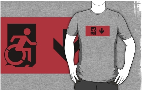 Accessible Exit Sign Project Wheelchair Wheelie Running Man Symbol Means of Egress Icon Disability Emergency Evacuation Fire Safety Adult t-shirt 143
