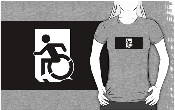 Accessible Exit Sign Project Wheelchair Wheelie Running Man Symbol Means of Egress Icon Disability Emergency Evacuation Fire Safety Adult t-shirt 146