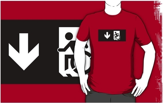 Accessible Exit Sign Project Wheelchair Wheelie Running Man Symbol Means of Egress Icon Disability Emergency Evacuation Fire Safety Adult t-shirt 147