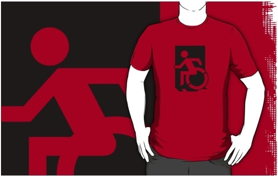 Accessible Exit Sign Project Wheelchair Wheelie Running Man Symbol Means of Egress Icon Disability Emergency Evacuation Fire Safety Adult t-shirt 151