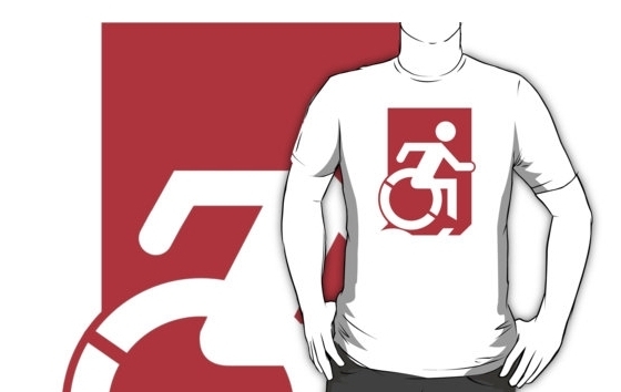 Accessible Exit Sign Project Wheelchair Wheelie Running Man Symbol Means of Egress Icon Disability Emergency Evacuation Fire Safety Adult t-shirt 153
