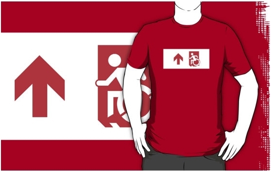 Accessible Exit Sign Project Wheelchair Wheelie Running Man Symbol Means of Egress Icon Disability Emergency Evacuation Fire Safety Adult t-shirt 158