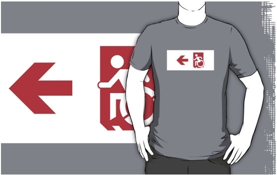 Accessible Exit Sign Project Wheelchair Wheelie Running Man Symbol Means of Egress Icon Disability Emergency Evacuation Fire Safety Adult t-shirt 159