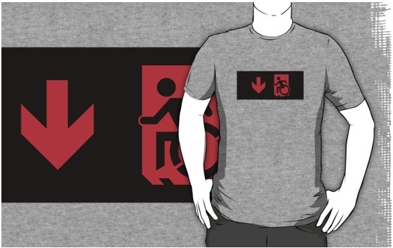 Accessible Exit Sign Project Wheelchair Wheelie Running Man Symbol Means of Egress Icon Disability Emergency Evacuation Fire Safety Adult t-shirt 16