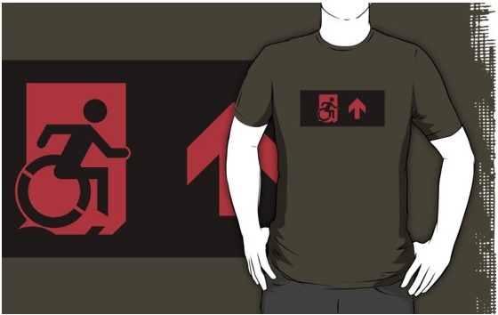 Accessible Exit Sign Project Wheelchair Wheelie Running Man Symbol Means of Egress Icon Disability Emergency Evacuation Fire Safety Adult t-shirt 164