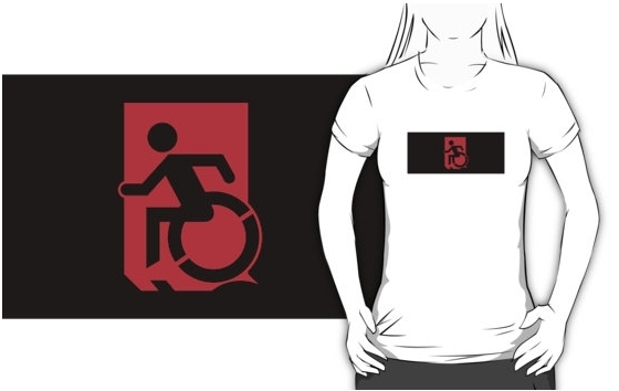 Accessible Exit Sign Project Wheelchair Wheelie Running Man Symbol Means of Egress Icon Disability Emergency Evacuation Fire Safety Adult t-shirt 20