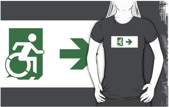 Accessible Exit Sign Project Wheelchair Wheelie Running Man Symbol Means of Egress Icon Disability Emergency Evacuation Fire Safety Adult t-shirt 22
