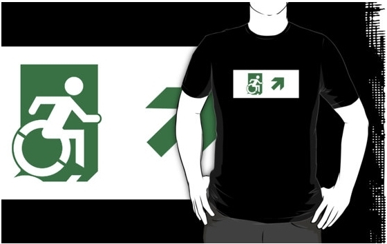 Accessible Exit Sign Project Wheelchair Wheelie Running Man Symbol Means of Egress Icon Disability Emergency Evacuation Fire Safety Adult t-shirt 23