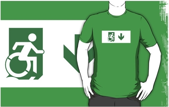 Accessible Exit Sign Project Wheelchair Wheelie Running Man Symbol Means of Egress Icon Disability Emergency Evacuation Fire Safety Adult t-shirt 26