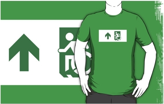 Accessible Exit Sign Project Wheelchair Wheelie Running Man Symbol Means of Egress Icon Disability Emergency Evacuation Fire Safety Adult t-shirt 28