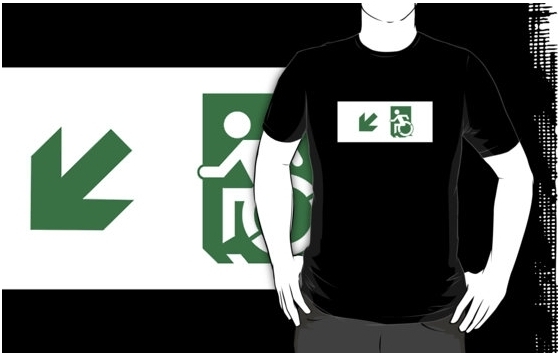 Accessible Exit Sign Project Wheelchair Wheelie Running Man Symbol Means of Egress Icon Disability Emergency Evacuation Fire Safety Adult t-shirt 34