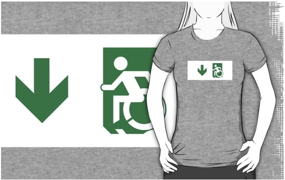 Accessible Exit Sign Project Wheelchair Wheelie Running Man Symbol Means of Egress Icon Disability Emergency Evacuation Fire Safety Adult t-shirt 36