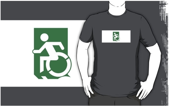 Accessible Exit Sign Project Wheelchair Wheelie Running Man Symbol Means of Egress Icon Disability Emergency Evacuation Fire Safety Adult t-shirt 37
