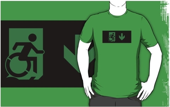 Accessible Exit Sign Project Wheelchair Wheelie Running Man Symbol Means of Egress Icon Disability Emergency Evacuation Fire Safety Adult t-shirt 42