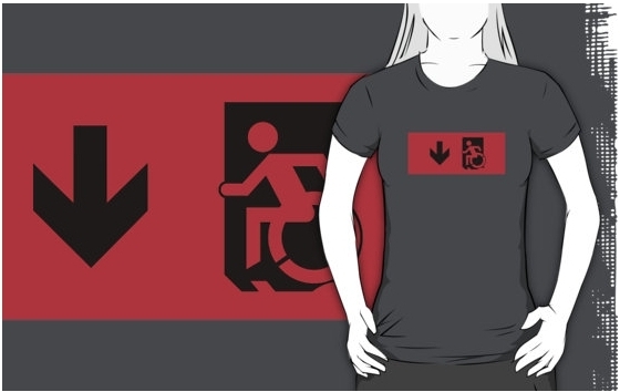 Accessible Exit Sign Project Wheelchair Wheelie Running Man Symbol Means of Egress Icon Disability Emergency Evacuation Fire Safety Adult t-shirt 46