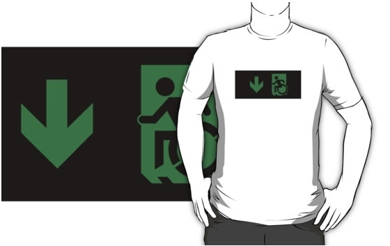 Accessible Exit Sign Project Wheelchair Wheelie Running Man Symbol Means of Egress Icon Disability Emergency Evacuation Fire Safety Adult t-shirt 52