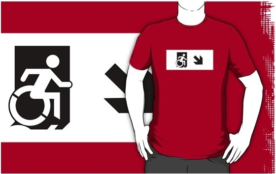 Accessible Exit Sign Project Wheelchair Wheelie Running Man Symbol Means of Egress Icon Disability Emergency Evacuation Fire Safety Adult t-shirt 58