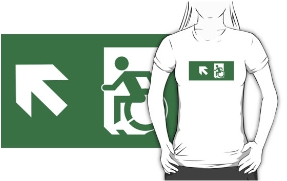 Accessible Exit Sign Project Wheelchair Wheelie Running Man Symbol Means of Egress Icon Disability Emergency Evacuation Fire Safety Adult t-shirt 61