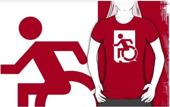 Accessible Exit Sign Project Wheelchair Wheelie Running Man Symbol Means of Egress Icon Disability Emergency Evacuation Fire Safety Adult t-shirt 62