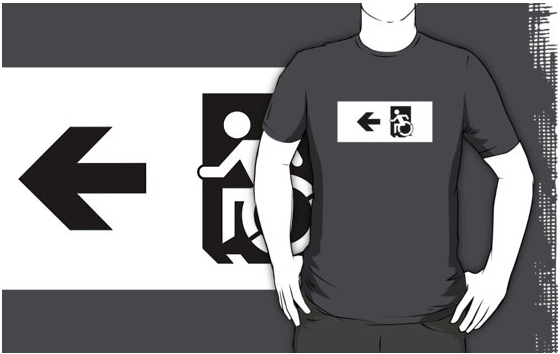 Accessible Exit Sign Project Wheelchair Wheelie Running Man Symbol Means of Egress Icon Disability Emergency Evacuation Fire Safety Adult t-shirt 65