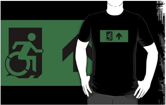 Accessible Exit Sign Project Wheelchair Wheelie Running Man Symbol Means of Egress Icon Disability Emergency Evacuation Fire Safety Adult t-shirt 68