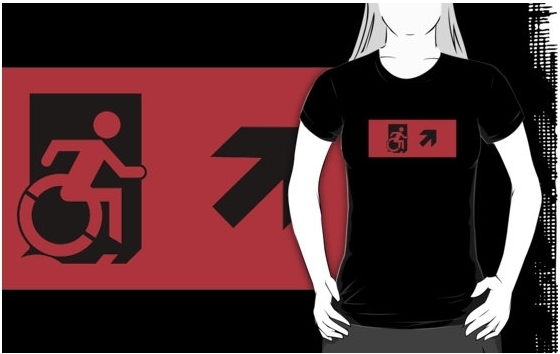 Accessible Exit Sign Project Wheelchair Wheelie Running Man Symbol Means of Egress Icon Disability Emergency Evacuation Fire Safety Adult t-shirt 73