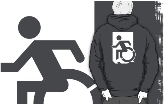 Accessible Exit Sign Project Wheelchair Wheelie Running Man Symbol Means of Egress Icon Disability Emergency Evacuation Fire Safety Adult t-shirt 75