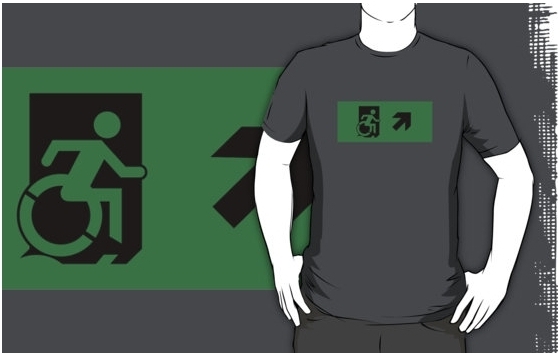 Accessible Exit Sign Project Wheelchair Wheelie Running Man Symbol Means of Egress Icon Disability Emergency Evacuation Fire Safety Adult t-shirt 78