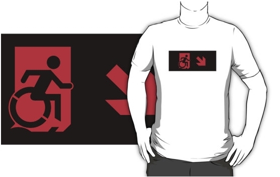 Accessible Exit Sign Project Wheelchair Wheelie Running Man Symbol Means of Egress Icon Disability Emergency Evacuation Fire Safety Adult t-shirt 8