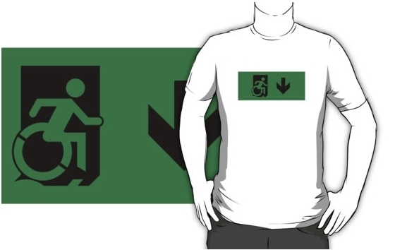 Accessible Exit Sign Project Wheelchair Wheelie Running Man Symbol Means of Egress Icon Disability Emergency Evacuation Fire Safety Adult t-shirt 80