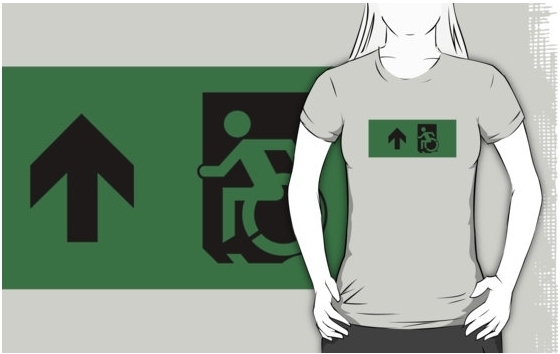 Accessible Exit Sign Project Wheelchair Wheelie Running Man Symbol Means of Egress Icon Disability Emergency Evacuation Fire Safety Adult t-shirt 81