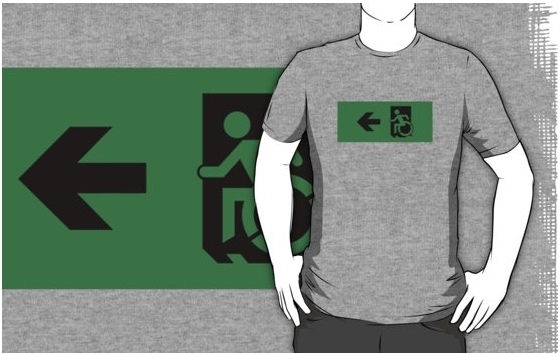 Accessible Exit Sign Project Wheelchair Wheelie Running Man Symbol Means of Egress Icon Disability Emergency Evacuation Fire Safety Adult t-shirt 83