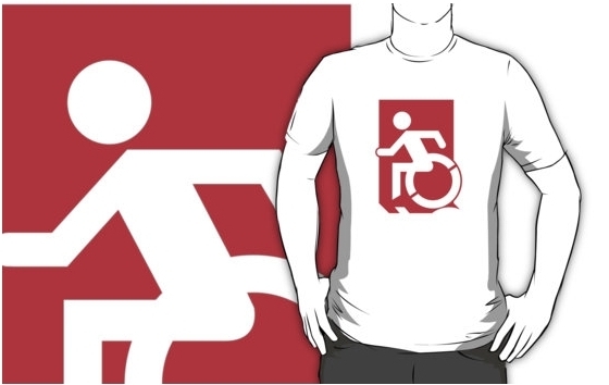 Accessible Exit Sign Project Wheelchair Wheelie Running Man Symbol Means of Egress Icon Disability Emergency Evacuation Fire Safety Adult t-shirt 86