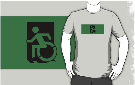 Accessible Exit Sign Project Wheelchair Wheelie Running Man Symbol Means of Egress Icon Disability Emergency Evacuation Fire Safety Adult t-shirt 92