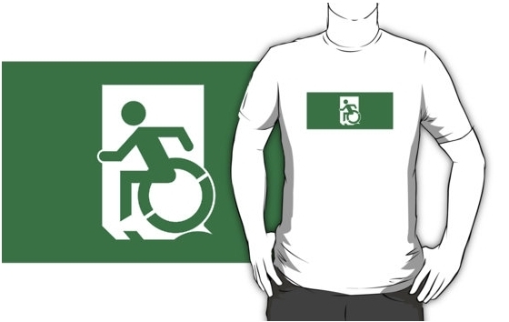 Accessible Exit Sign Project Wheelchair Wheelie Running Man Symbol Means of Egress Icon Disability Emergency Evacuation Fire Safety Adult t-shirt 94