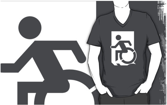 Accessible Exit Sign Project Wheelchair Wheelie Running Man Symbol Means of Egress Icon Disability Emergency Evacuation Fire Safety Adult t-shirt 95