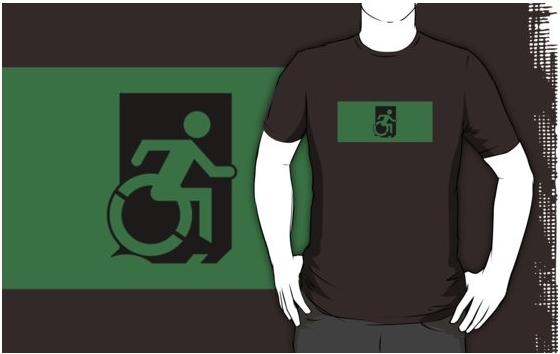 Accessible Exit Sign Project Wheelchair Wheelie Running Man Symbol Means of Egress Icon Disability Emergency Evacuation Fire Safety Adult t-shirt 96
