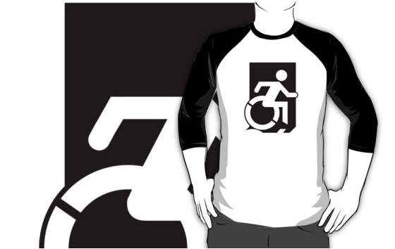 Accessible Exit Sign Project Wheelchair Wheelie Running Man Symbol Means of Egress Icon Disability Emergency Evacuation Fire Safety Adult t-shirt 97
