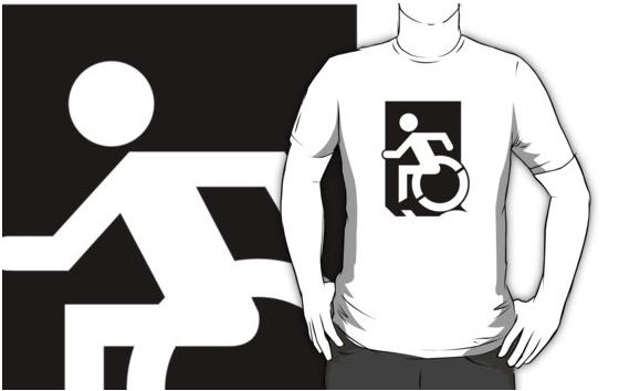 Accessible Exit Sign Project Wheelchair Wheelie Running Man Symbol Means of Egress Icon Disability Emergency Evacuation Fire Safety Adult t-shirt 98